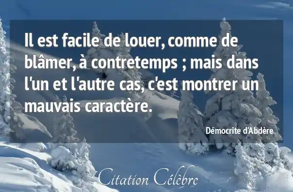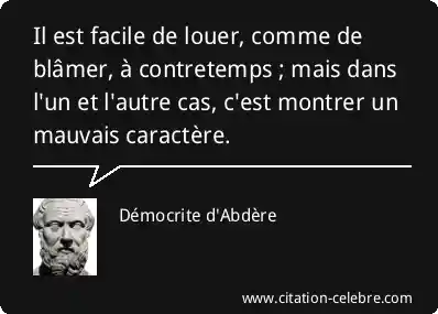Il est facile de louer, comme de blâmer, à contretemps ; mais dans l'un et l'autre cas, c'est montrer un mauvais caractère.