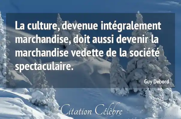 La culture, devenue intégralement marchandise, doit aussi devenir la marchandise vedette de la société spectaculaire.