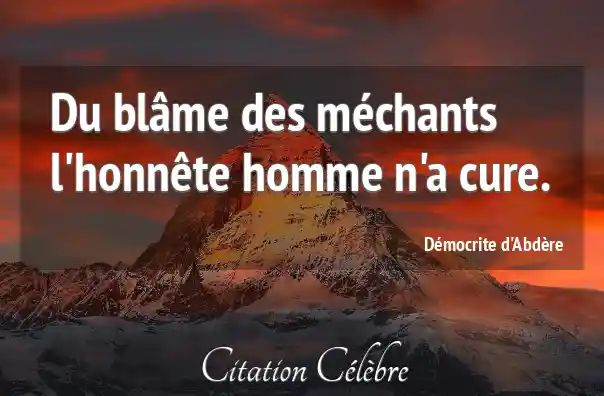 Du blâme des méchants l'honnête homme n'a cure.