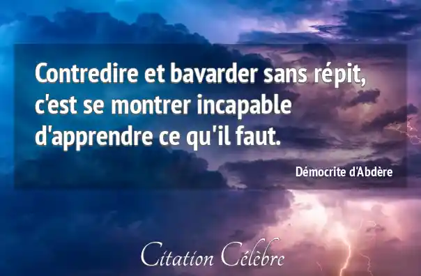 Contredire et bavarder sans répit, c'est se montrer incapable d'apprendre ce qu'il faut.