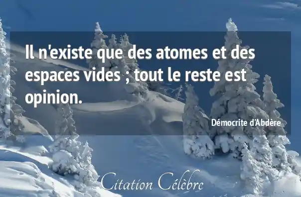Il n'existe que des atomes et des espaces vides ; tout le reste est opinion.