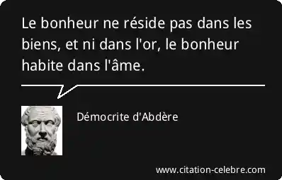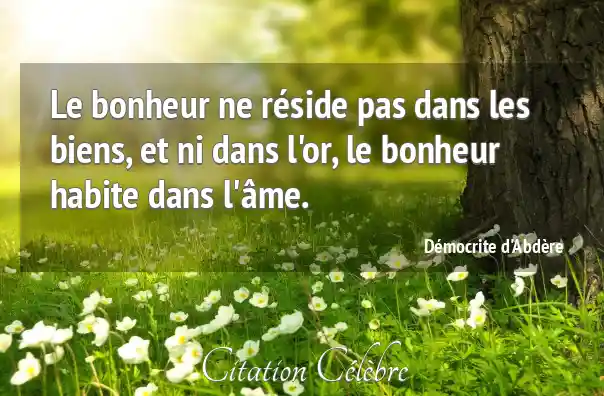 Le bonheur ne réside pas dans les biens, et ni dans l'or, le bonheur habite dans l'âme.