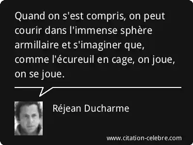 Quand on s'est compris, on peut courir dans l'immense sphère armillaire et s'imaginer que, comme l'écureuil en cage, on joue, on se joue.