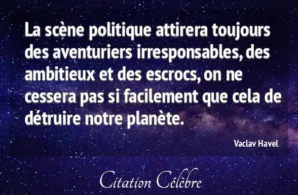 La scène politique attirera toujours des aventuriers irresponsables, des ambitieux et des escrocs, on ne cessera pas si facilement que cela de détruire notre planète.