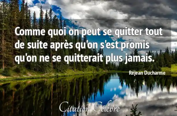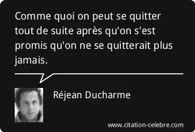 Comme quoi on peut se quitter tout de suite après qu'on s'est promis qu'on ne se quitterait plus jamais.