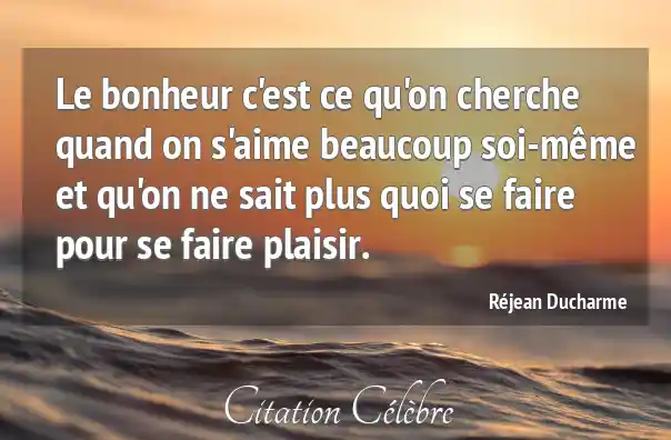 Le bonheur c'est ce qu'on cherche quand on s'aime beaucoup soi-même et qu'on ne sait plus quoi se faire pour se faire plaisir.