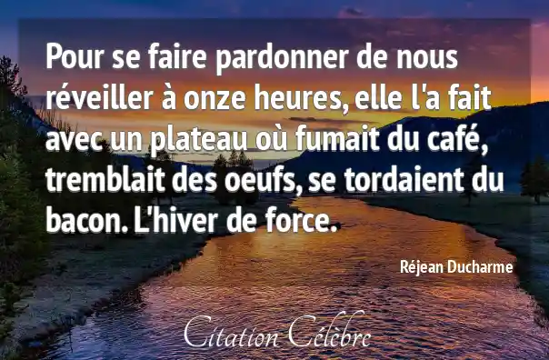 Pour se faire pardonner de nous réveiller à onze heures, elle l'a fait avec un plateau où fumait du café, tremblait des oeufs, se tordaient du bacon. L'hiver de force.