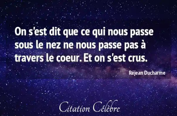 On s'est dit que ce qui nous passe sous le nez ne nous passe pas à travers le coeur. Et on s'est crus.