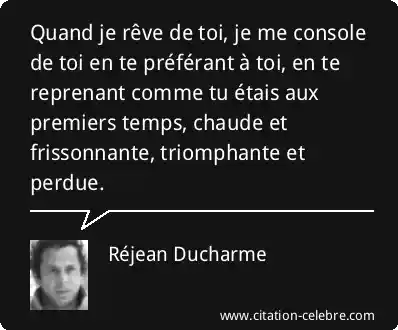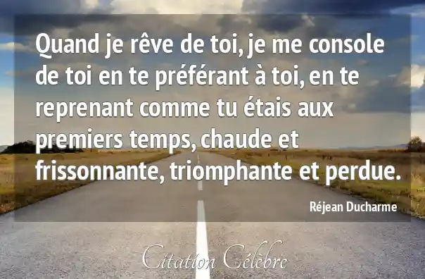 Quand je rêve de toi, je me console de toi en te préférant à toi, en te reprenant comme tu étais aux premiers temps, chaude et frissonnante, triomphante et perdue.