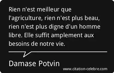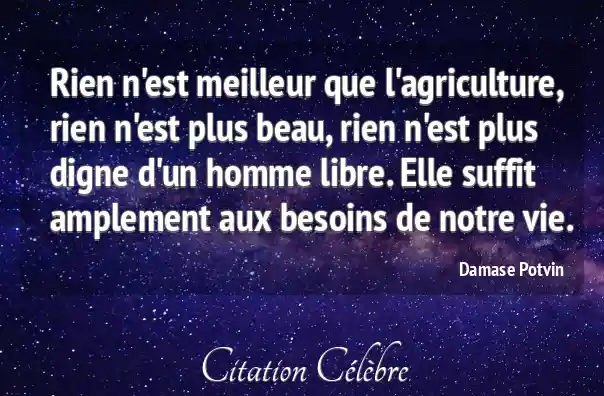 Rien n'est meilleur que l'agriculture, rien n'est plus beau, rien n'est plus digne d'un homme libre. Elle suffit amplement aux besoins de notre vie.
