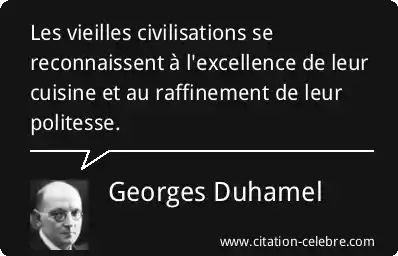Les vieilles civilisations se reconnaissent à l'excellence de leur cuisine et au raffinement de leur politesse.