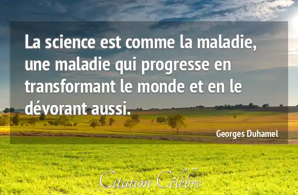 La science est comme la maladie, une maladie qui progresse en transformant le monde et en le dévorant aussi.