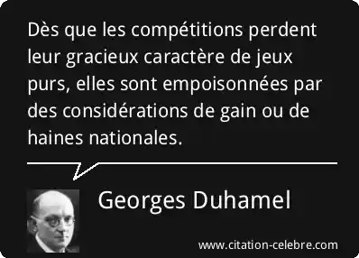 Dès que les compétitions perdent leur gracieux caractère de jeux purs, elles sont empoisonnées par des considérations de gain ou de haines nationales.