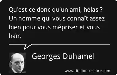Qu'est-ce donc qu'un ami, hélas ? Un homme qui vous connaît assez bien pour vous mépriser et vous haïr.