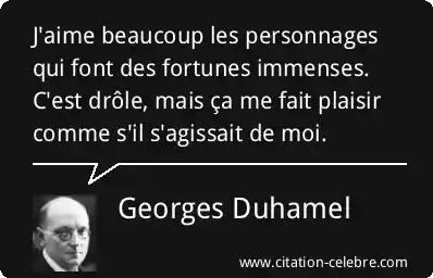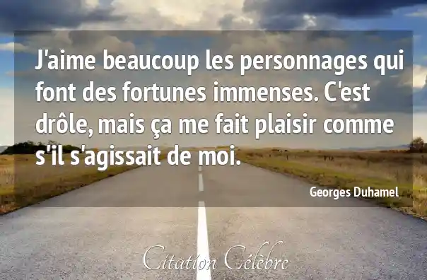 J'aime beaucoup les personnages qui font des fortunes immenses. C'est drôle, mais ça me fait plaisir comme s'il s'agissait de moi.