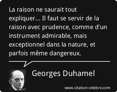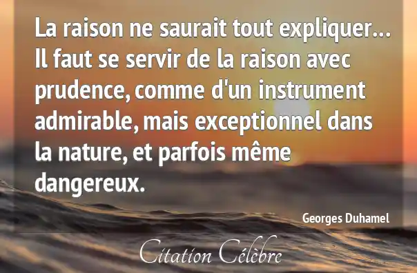 La raison ne saurait tout expliquer... Il faut se servir de la raison avec prudence, comme d'un instrument admirable, mais exceptionnel dans la nature, et parfois même dangereux.