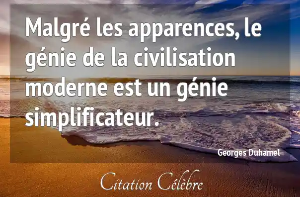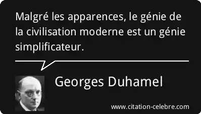 Malgré les apparences, le génie de la civilisation moderne est un génie simplificateur.