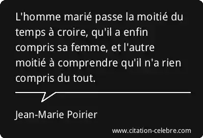 L'homme marié passe la moitié du temps à croire, qu'il a enfin compris sa femme, et l'autre moitié à comprendre qu'il n'a rien compris du tout.