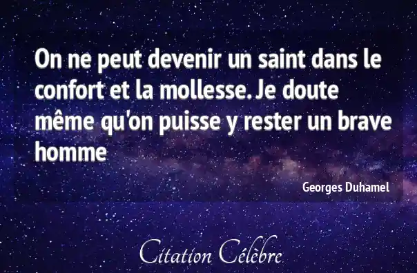 On ne peut devenir un saint dans le confort et la mollesse. Je doute même qu'on puisse y rester un brave homme