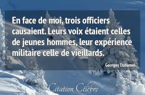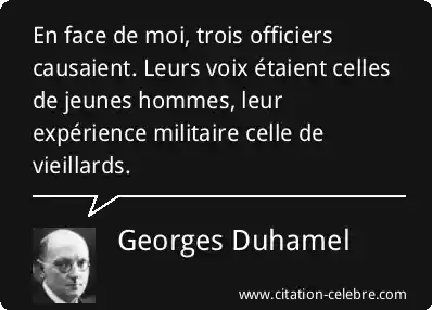 En face de moi, trois officiers causaient. Leurs voix étaient celles de jeunes hommes, leur expérience militaire celle de vieillards.