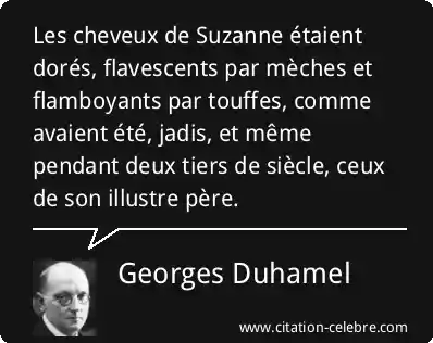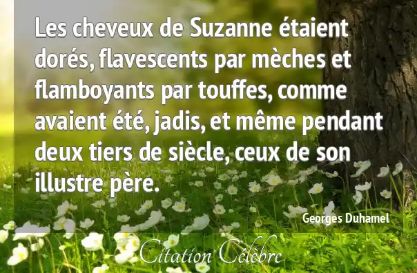 Les cheveux de Suzanne étaient dorés, flavescents par mèches et flamboyants par touffes, comme avaient été, jadis, et même pendant deux tiers de siècle, ceux de son illustre père.