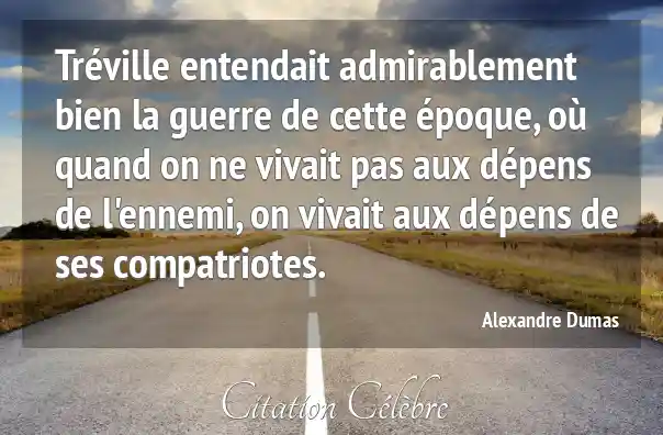 Tréville entendait admirablement bien la guerre de cette époque, où quand on ne vivait pas aux dépens de l'ennemi, on vivait aux dépens de ses compatriotes.