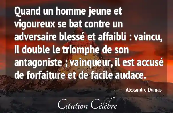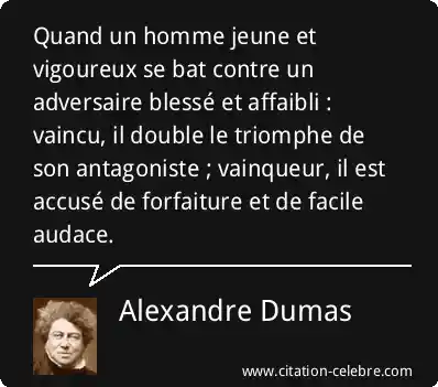 Quand un homme jeune et vigoureux se bat contre un adversaire blessé et affaibli : vaincu, il double le triomphe de son antagoniste ; vainqueur, il est accusé de forfaiture et de facile audace.
