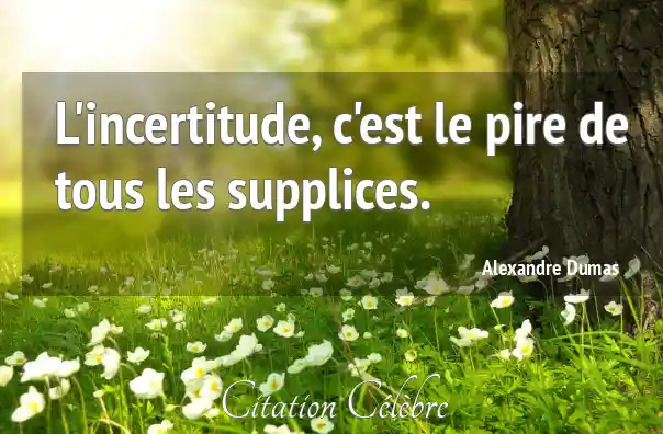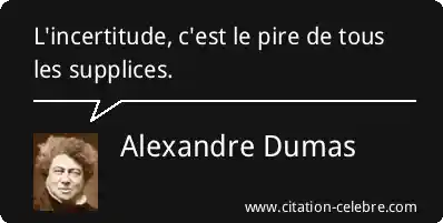 Citation Alexandre Dumas incertitude : L'incertitude, c'est le pire de tous les supplices....