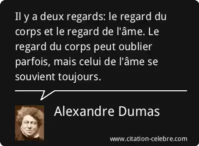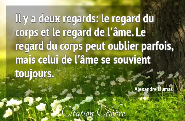 Il y a deux regards: le regard du corps et le regard de l'âme. Le regard du corps peut oublier parfois, mais celui de l'âme se souvient toujours.