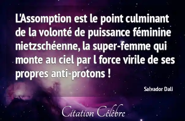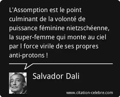 L'Assomption est le point culminant de la volonté de puissance féminine nietzschéenne, la super-femme qui monte au ciel par l force virile de ses propres anti-protons !