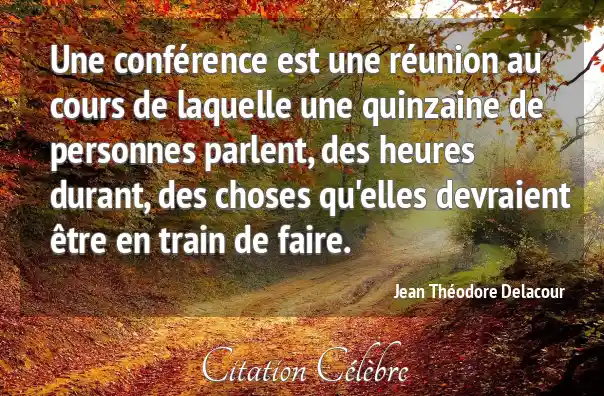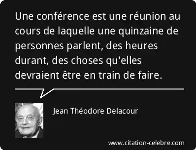 Une conférence est une réunion au cours de laquelle une quinzaine de personnes parlent, des heures durant, des choses qu'elles devraient être en train de faire.
