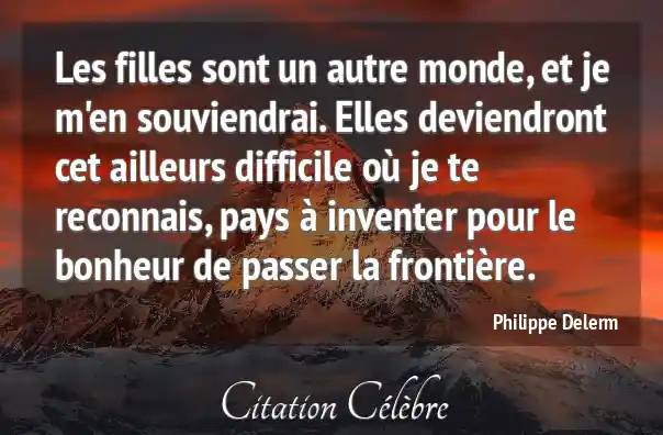 Les filles sont un autre monde, et je m'en souviendrai. Elles deviendront cet ailleurs difficile où je te reconnais, pays à inventer pour le bonheur de passer la frontière.