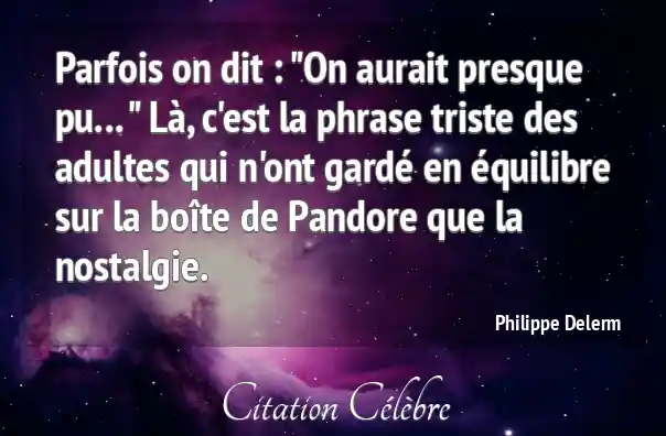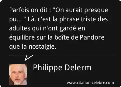 Parfois on dit : "On aurait presque pu... " Là, c'est la phrase triste des adultes qui n'ont gardé en équilibre sur la boîte de Pandore que la nostalgie.