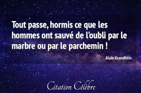 Tout passe, hormis ce que les hommes ont sauvé de l'oubli par le marbre ou par le parchemin !