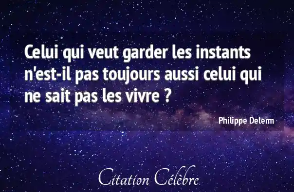 Celui qui veut garder les instants n'est-il pas toujours aussi celui qui ne sait pas les vivre ?