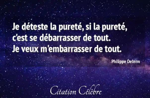 Je déteste la pureté, si la pureté, c'est se débarrasser de tout.Je veux m'embarrasser de tout.