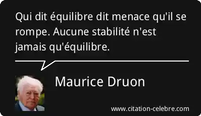 Qui dit équilibre dit menace qu'il se rompe. Aucune stabilité n'est jamais qu'équilibre.