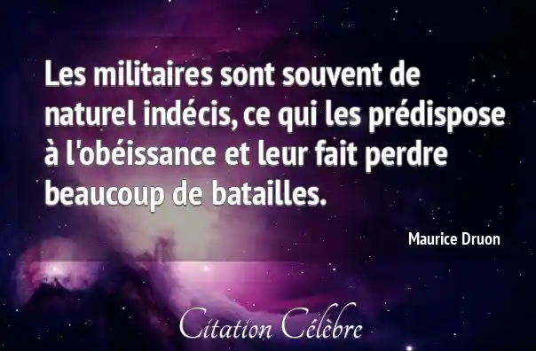 Les militaires sont souvent de naturel indécis, ce qui les prédispose à l'obéissance et leur fait perdre beaucoup de batailles.