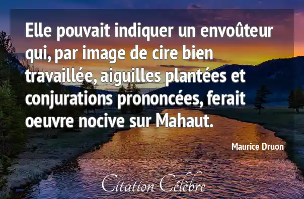 Elle pouvait indiquer un envoûteur qui, par image de cire bien travaillée, aiguilles plantées et conjurations prononcées, ferait oeuvre nocive sur Mahaut.