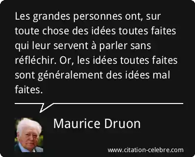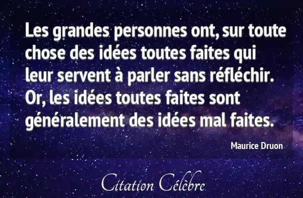 Les grandes personnes ont, sur toute chose des idées toutes faites qui leur servent à parler sans réfléchir. Or, les idées toutes faites sont généralement des idées mal faites.
