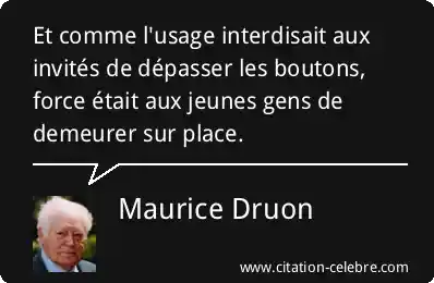 Et comme l'usage interdisait aux invités de dépasser les boutons, force était aux jeunes gens de demeurer sur place.