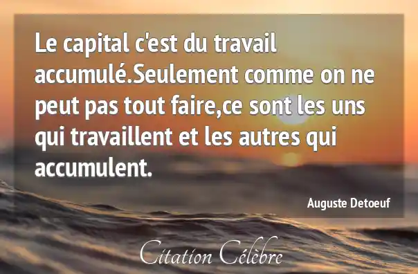 Le capital est seulement le fruit du travail et il n'aurait jamais pu exister si le travail n'avait tout d'abord existé.
