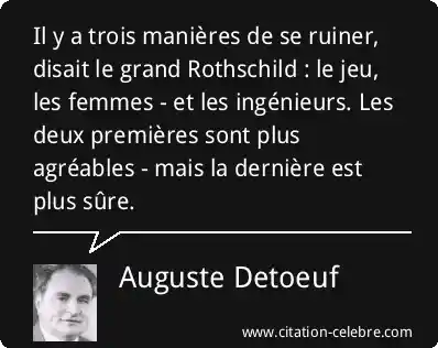 Il y a trois manières de se ruiner, disait le grand Rothschild : le jeu, les femmes - et les ingénieurs. Les deux premières sont plus agréables - mais la dernière est plus sûre.