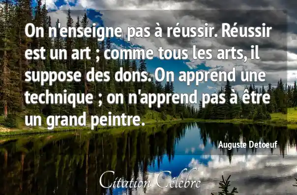 On n'enseigne pas à réussir. Réussir est un art ; comme tous les arts, il suppose des dons. On apprend une technique ; on n'apprend pas à être un grand peintre.