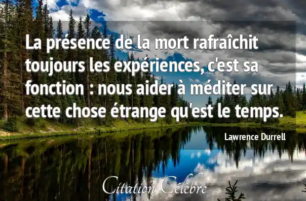 La présence de la mort rafraîchit toujours les expériences, c'est sa fonction : nous aider à méditer sur cette chose étrange qu'est le temps.