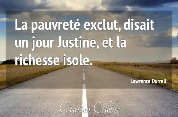La pauvreté exclut, disait un jour Justine, et la richesse isole.