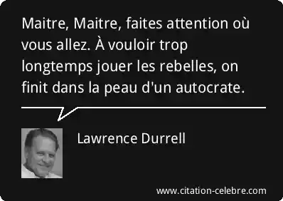 Maitre, Maitre, faites attention où vous allez. À vouloir trop longtemps jouer les rebelles, on finit dans la peau d'un autocrate.