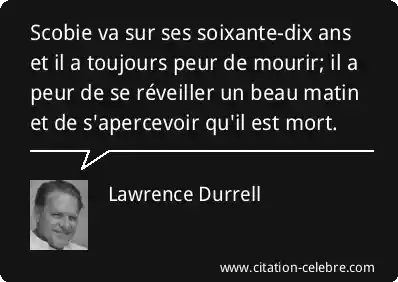 Scobie va sur ses soixante-dix ans et il a toujours peur de mourir; il a peur de se réveiller un beau matin et de s'apercevoir qu'il est mort.