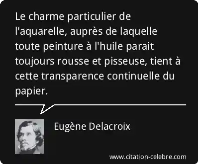 Le charme particulier de l'aquarelle, auprès de laquelle toute peinture à l'huile parait toujours rousse et pisseuse, tient à cette transparence continuelle du papier.