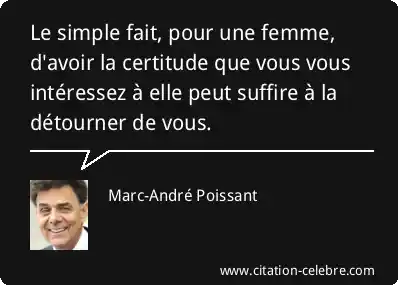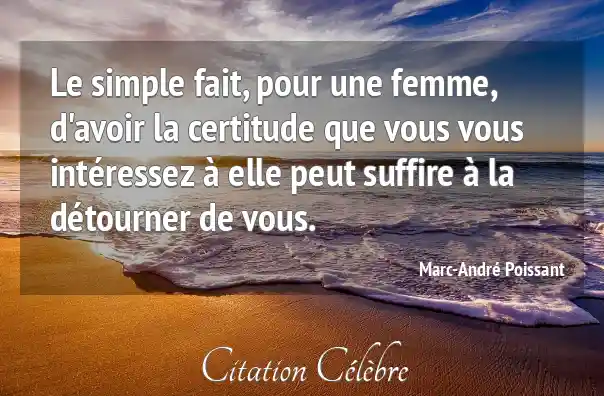 Le simple fait, pour une femme, d'avoir la certitude que vous vous intéressez à elle peut suffire à la détourner de vous.